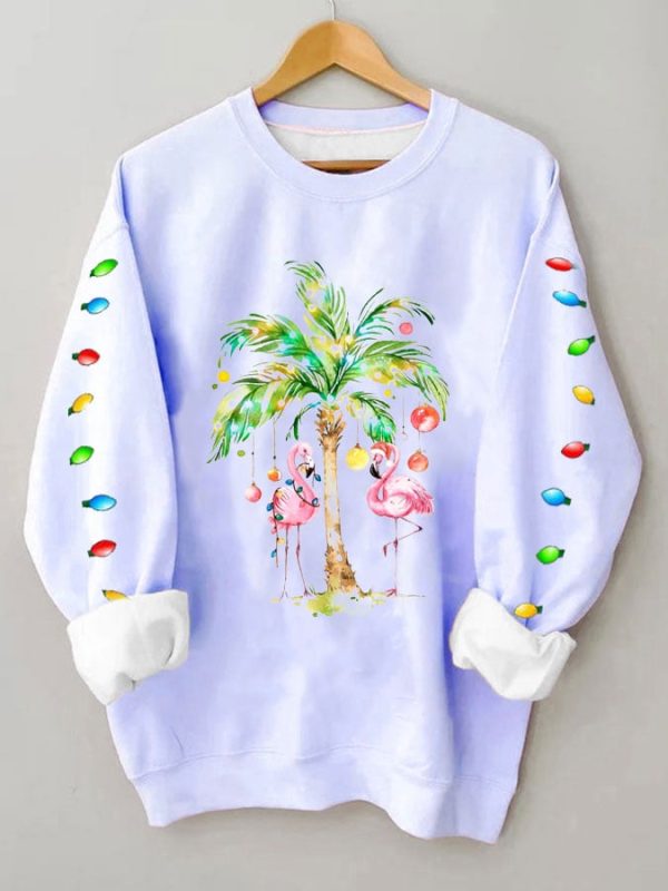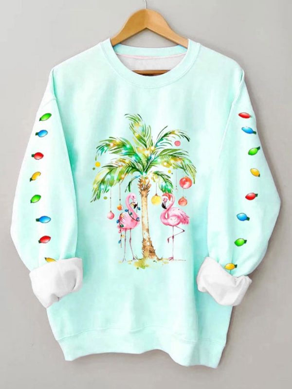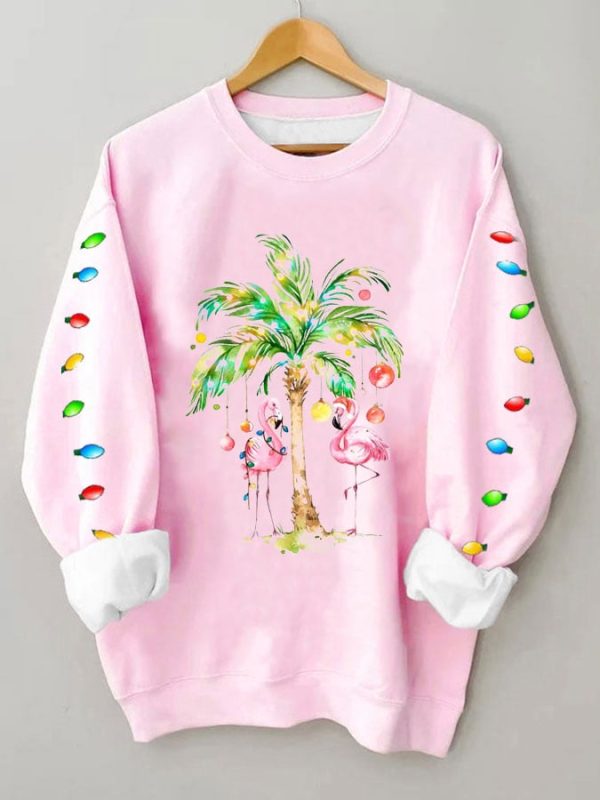 Women’s Merry Christmas Flamingo Print Casual Sweatshirt