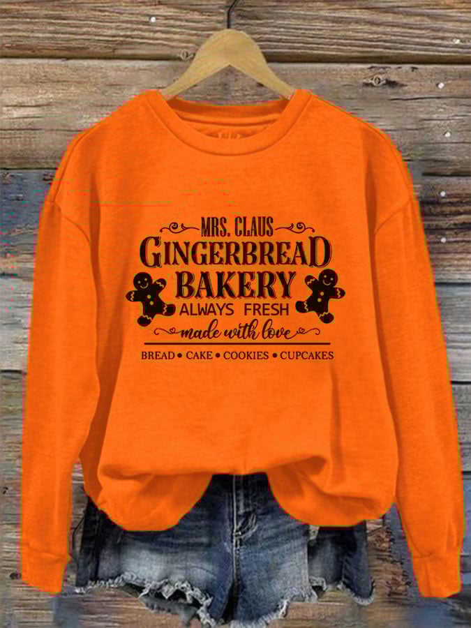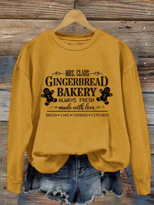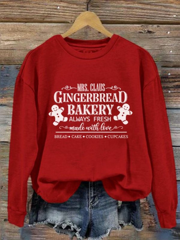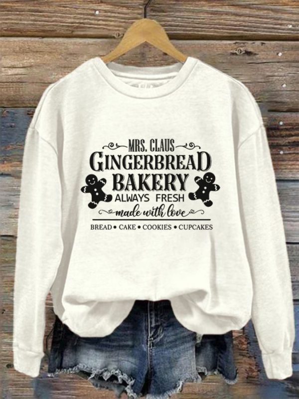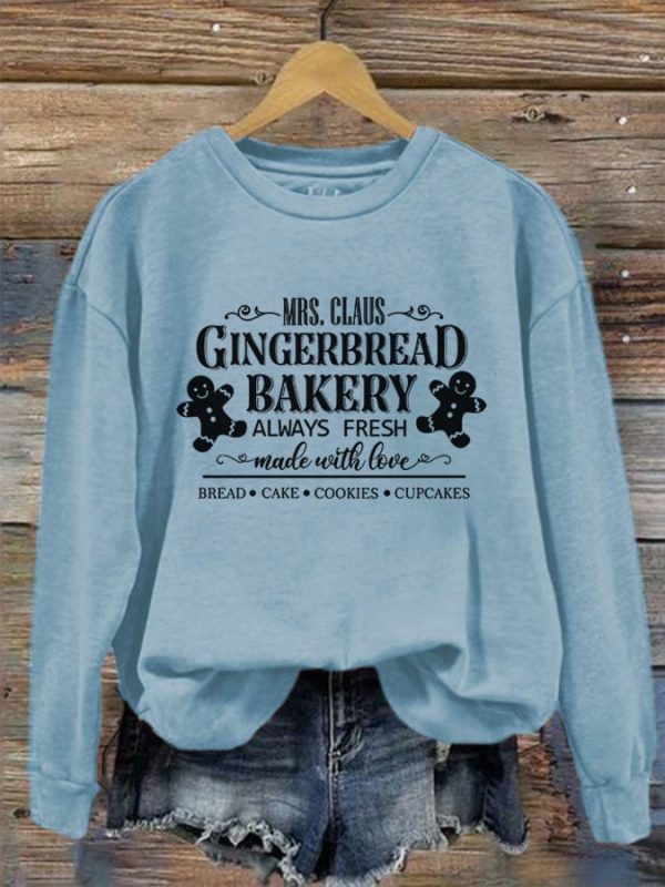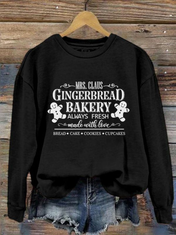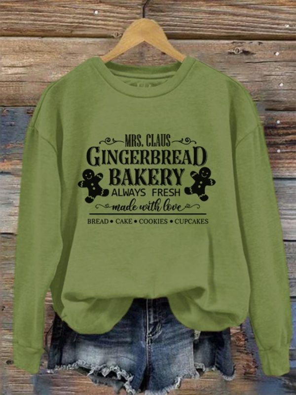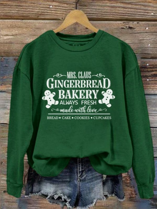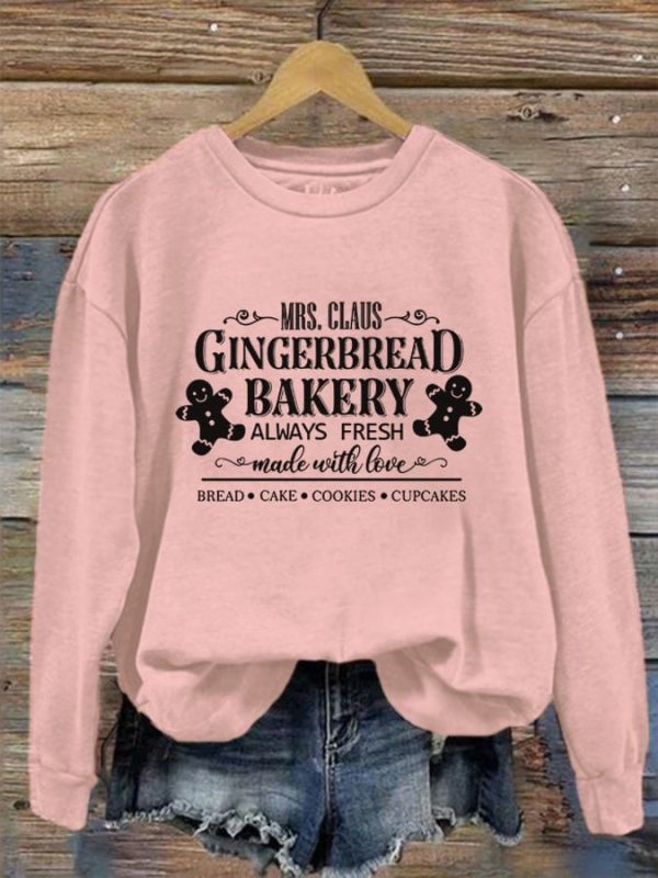 Women’s Mrs Claus Gingerbread Bakery Christmas Cookies Print Sweatshirt